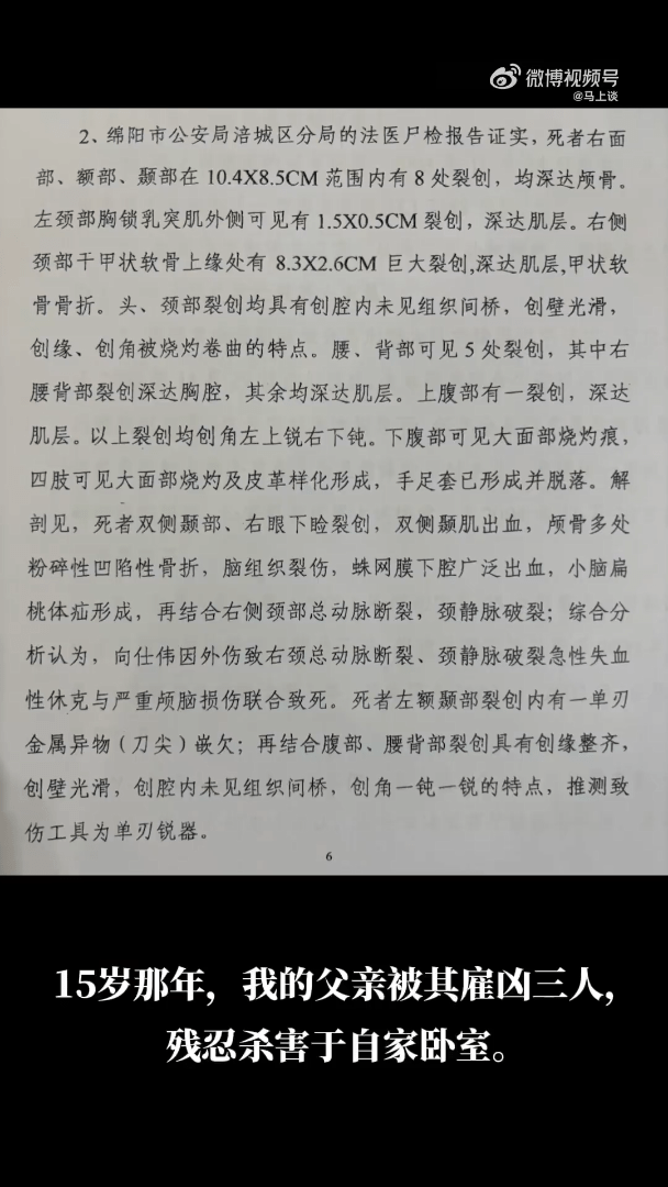 李某父親于20年前被殺。(微博)