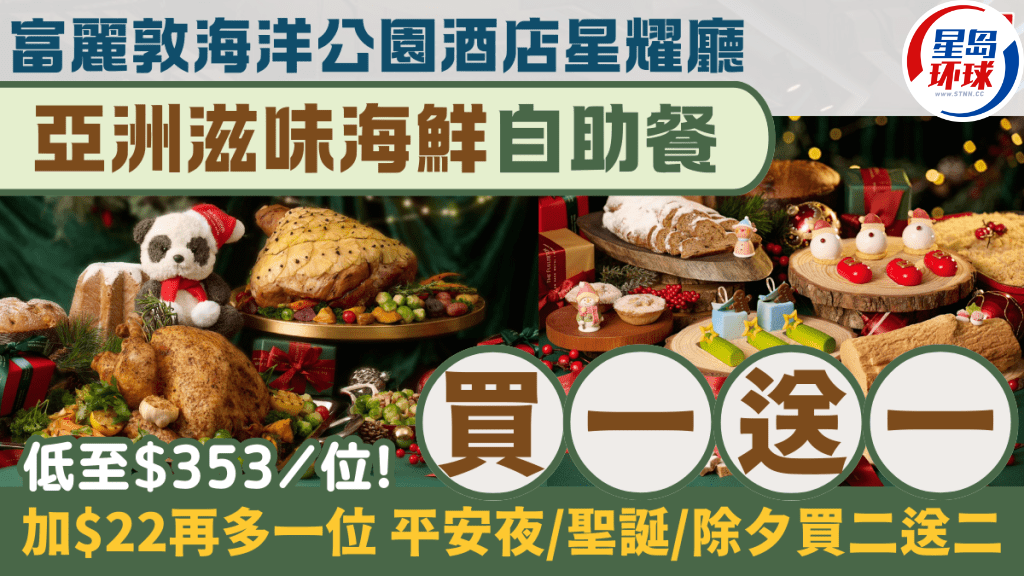 富麗敦海洋公園酒店星耀廳自助餐買一送一!低至353港元1位起,任食龍蝦/和牛,圣誕除夕買二送二