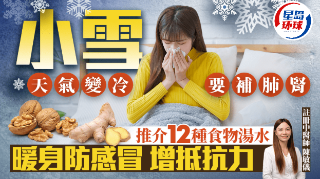 陳敏儀醫(yī)師推介4款適合在小雪時(shí)節(jié)食用的養(yǎng)生食療,包括湯水及粥品,并列出材料、功效、做法及食用宜忌,大家不妨參考。