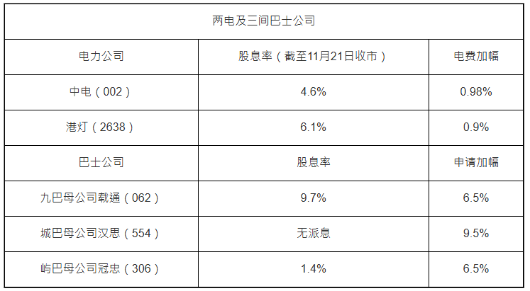 兩電、巴士明年齊加價(jià),可買股收息對(duì)沖?專家薦3大公用股