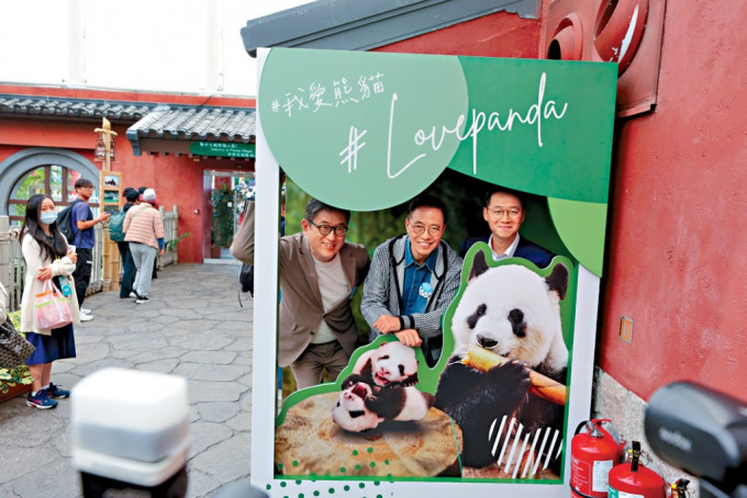 海洋公園昨日為龍鳳胎大熊貓舉行“百日慶典”,吸引一眾“契爺契媽”在門外等候入園慶祝,部分人穿戴大熊貓的頭飾或服飾,亦有人帶熊貓公仔入場(chǎng)。 游客入園后,工作人員向他們派發(fā)紅雞蛋,樂團(tuán)亦在場(chǎng)奏樂,氣氛熱鬧。