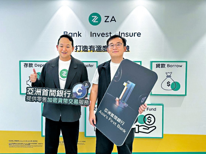▲ZA Bank替任行政總裁吳忠豪(左)與HashKey首席分析師丁肇飛,講解新推出的買賣加密貨幣服務(wù)。