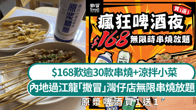內(nèi)地串燒放題殺入灣仔市中心!$168起無(wú)限時(shí)嘆逾30款串燒+涼拌小菜,原漿啤酒買(mǎi)1送1