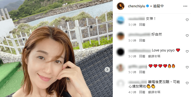 陳自瑤回春樣,獲袁偉豪在帖上心心眼留言:“Yo 姐春風(fēng)滿面”,而網(wǎng)民也留言大贊陳自瑤太美,“好好放松 多多po照片,Yoyo素顏無(wú)敵太美啦”、“Yoyo姐姐好靚好可愛(ài)”、“Enjoy ur me time sweetie”、“少女的美”、“Yoyo好美,好可愛(ài),索到呢,加油”,另有網(wǎng)民表示,“離婚后更加靚。可能心境放開(kāi)咗”,看來(lái)這位網(wǎng)民似乎有所誤會(huì),以為陳自瑤與王浩信已經(jīng)官宣離婚。