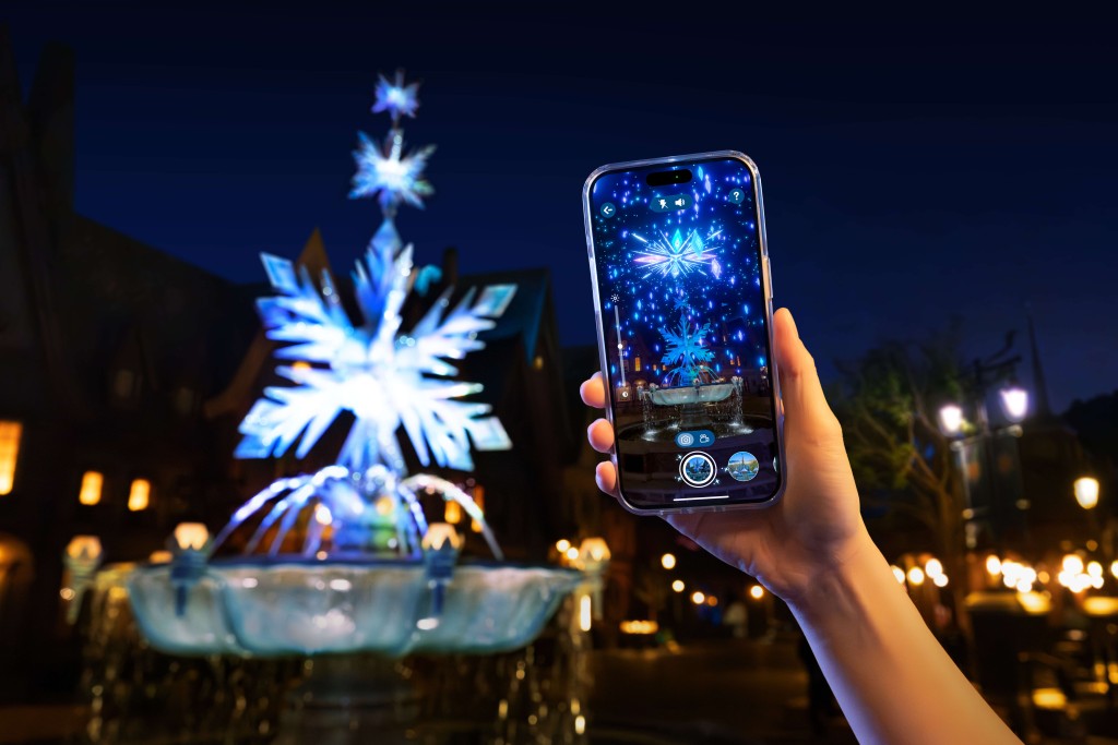 “阿德爾王國”更有圣誕節(jié)AR驚喜,只要于香港迪士尼樂園官方手機(jī)的應(yīng)用程式上選用“AR游樂園”,于友誼噴泉、鐘樓和阿德爾城堡就會(huì)出現(xiàn)愛莎隱藏了的冰雪魔法,時(shí)刻也可欣賞“煙花”!