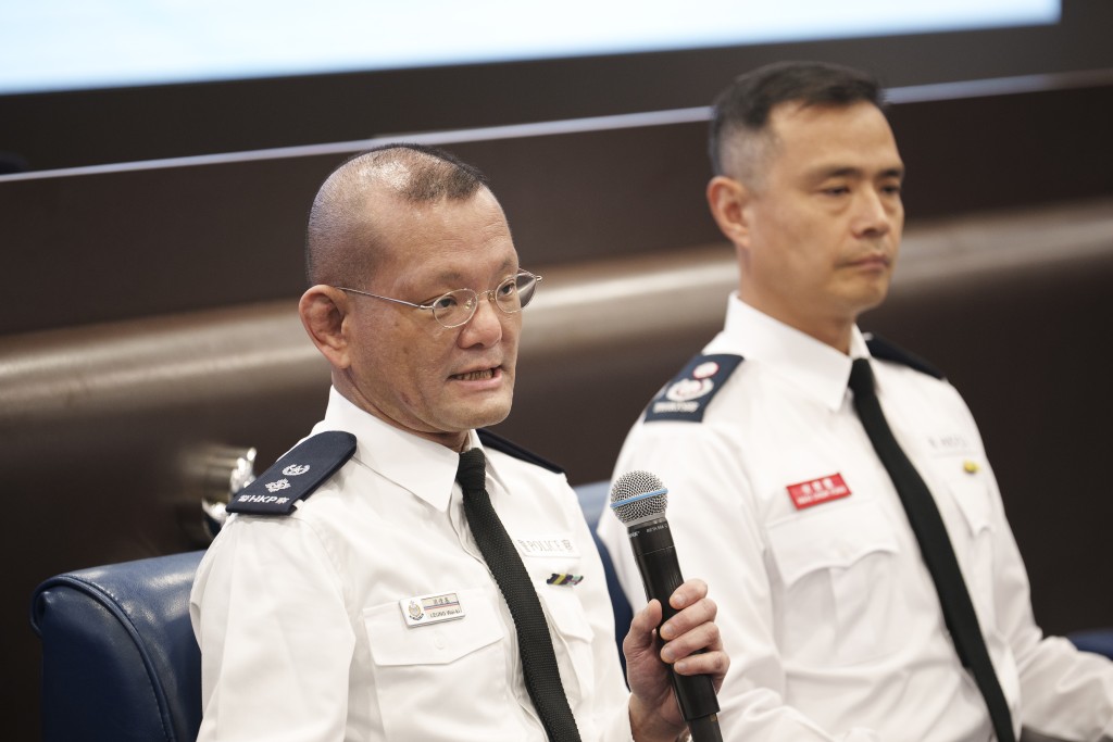 ▲跨部門反恐專責(zé)組主管梁偉基高級警司(左一)表示,六大紀(jì)律部隊(duì)全力配合“三層防范機(jī)制”相關(guān)的籌備工作。