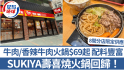 日本人氣牛丼品牌SUKIYA早前推出后大受歡迎的一人壽喜燒鍋于今個(gè)冬天再度回歸!壽喜燒鍋即日起在全線8間分店限定供應(yīng),分為牛肉及香辣牛肉口味,配料豐富,有菜、烏冬及白飯,售價(jià)只需$69起,想要享受雙倍的肉量,還可選擇額外加購(gòu)$20元!