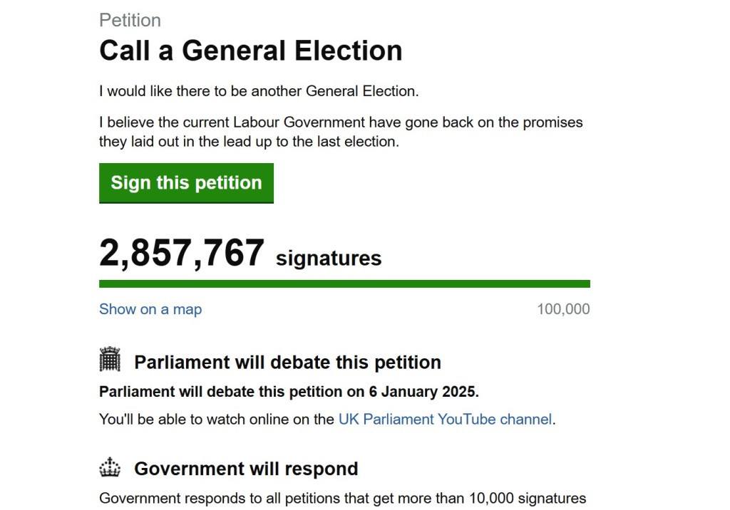 日前有英國人在國會(huì)官方網(wǎng)站發(fā)起聯(lián)署,要求提早大選,目前已有逾285萬人英國人簽署。