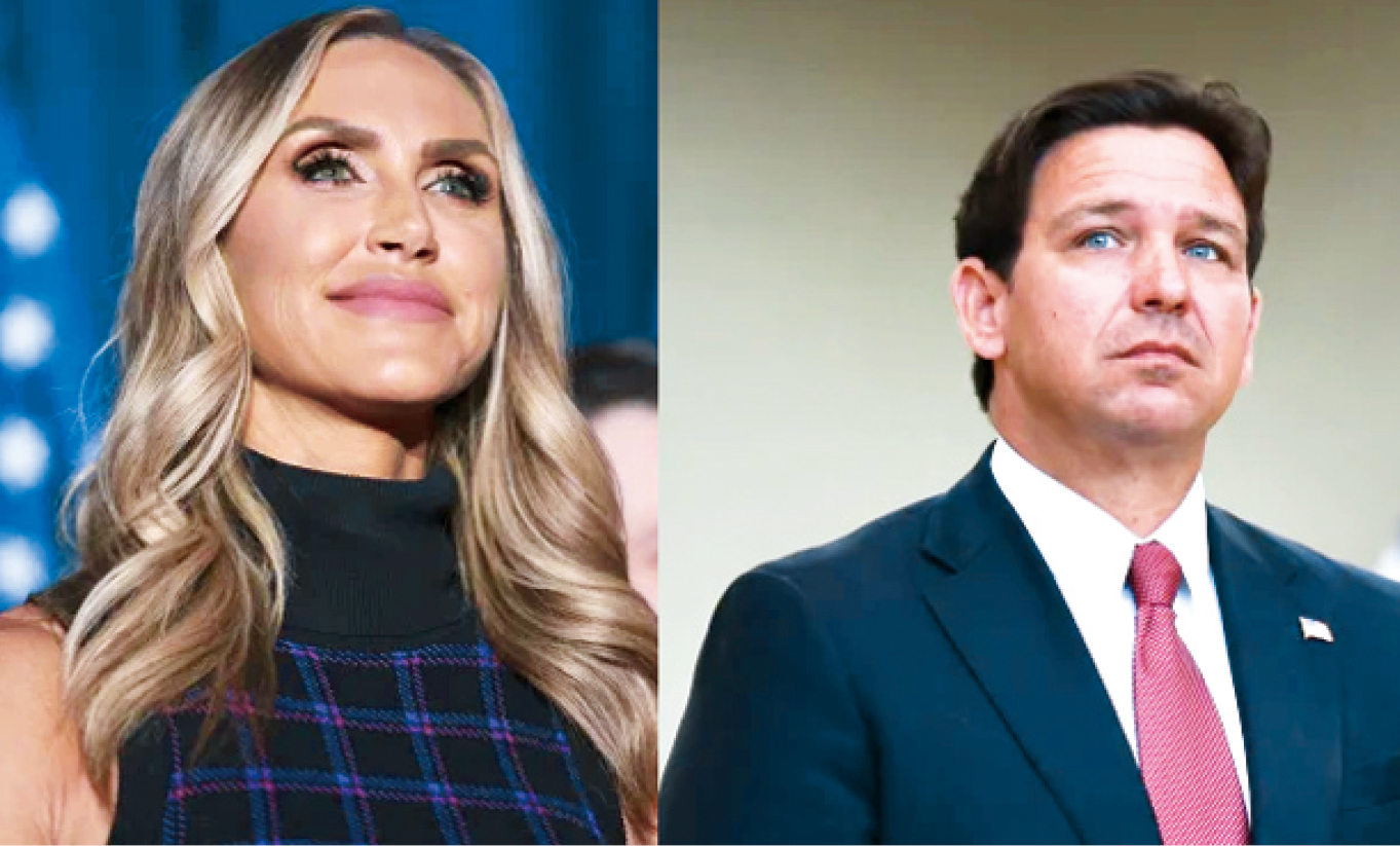 由于特朗普希望讓兒媳娜拉(左)繼任參院空缺,令佛州州長(zhǎng)德桑蒂斯陷入政治兩難。合拼圖片
