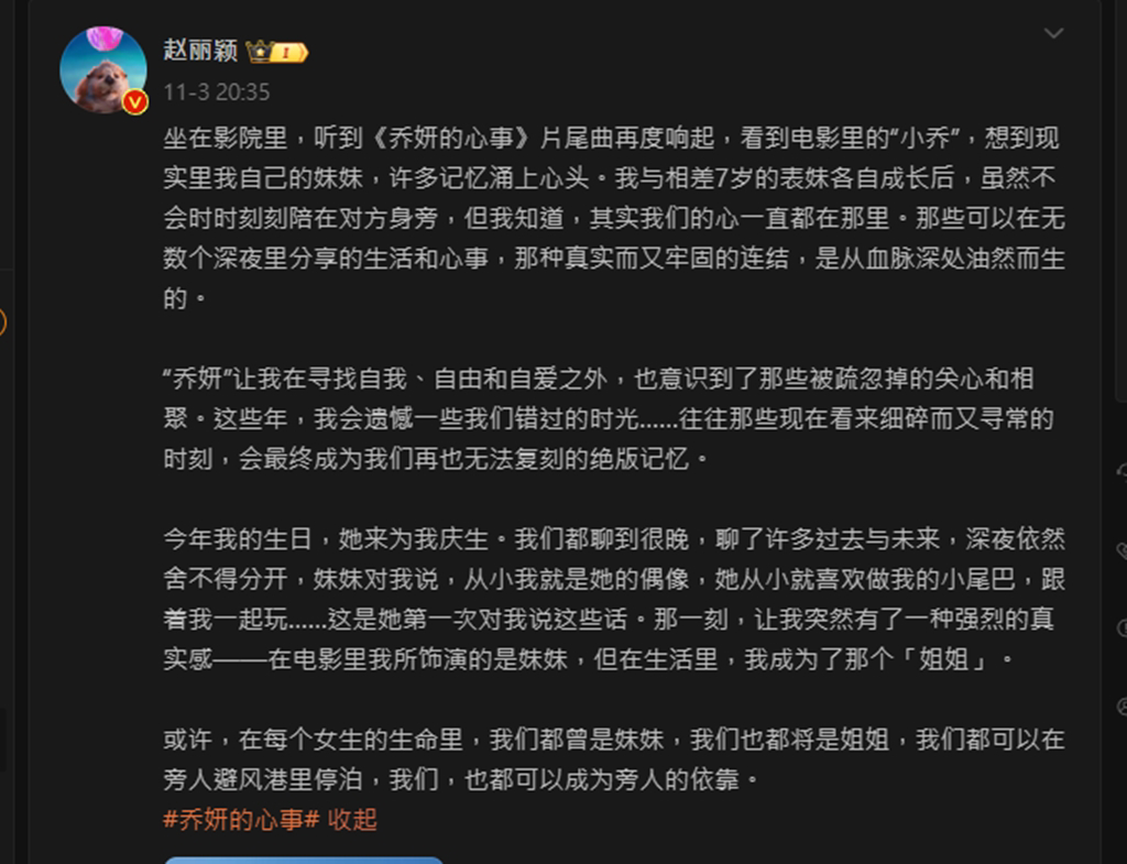 ▲趙麗穎最新發(fā)文停在本月初。 (圖/翻攝自趙麗穎微博)