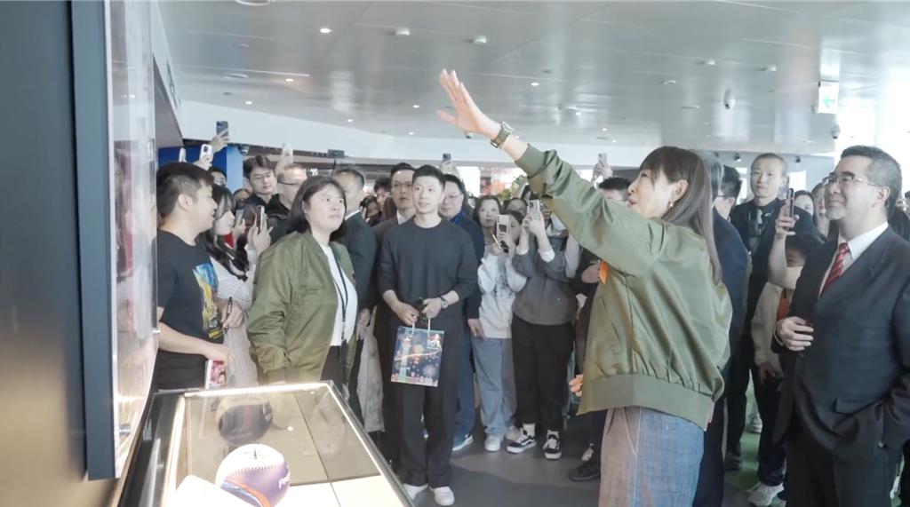 ▲馬英九基金會(huì)陸生團(tuán)30日下午參訪(fǎng)臺(tái)北101,臺(tái)北101董事長(zhǎng)賈永婕(右舉手者)也全程陪同,恰巧101展出中國(guó)臺(tái)北隊(duì)“12強(qiáng)”特區(qū),有全隊(duì)簽名衣、壘包等,賈永婕表示,“他們也看得很開(kāi)心”。(馬英九基金會(huì)提供/陳薏云臺(tái)北傳真)
