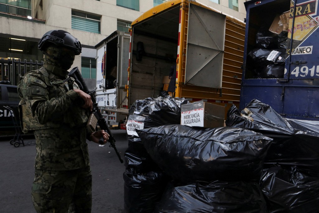 墨西哥海軍人員監(jiān)督檢獲貨物。(路透社)