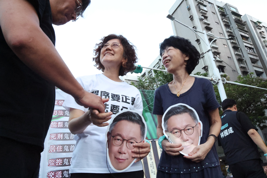 圖為柯文哲妻子陳佩琪(右一)、柯文哲的妹妹柯美蘭(中)。