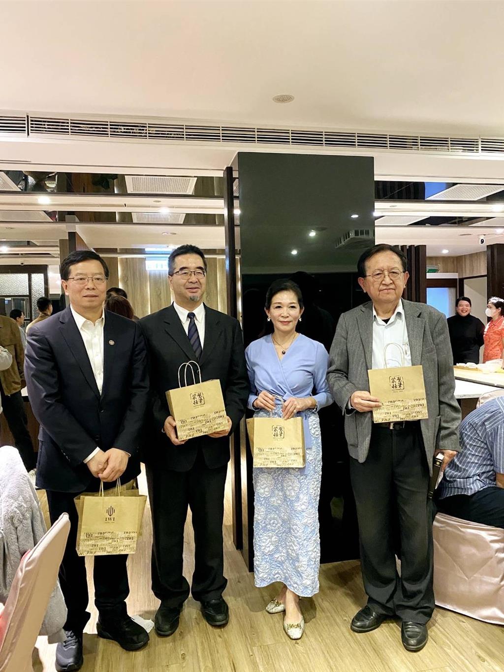 ▲老板娘黃碧嬌(右二)除了準(zhǔn)備現(xiàn)撈海鮮小卷、清蒸龍鱈魚等大陸內(nèi)地少見的菜色外,還準(zhǔn)備了世界知名的特色鋼珠筆當(dāng)伴手禮送給遠(yuǎn)道而來的陸生團(tuán)。 黃碧嬌提供