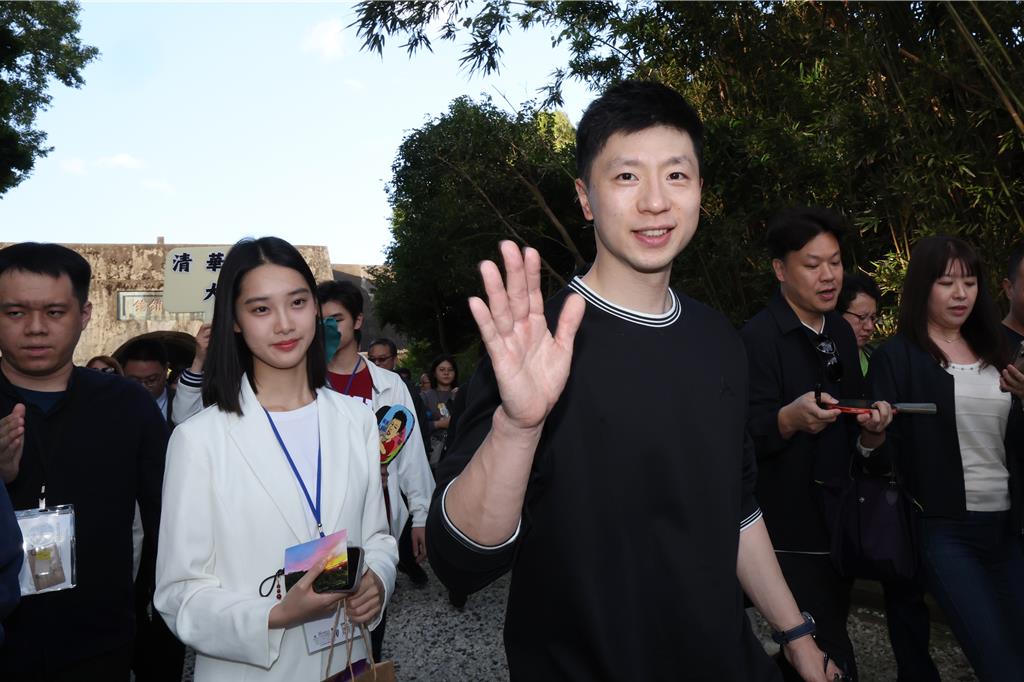 ▲陸生團(tuán)3日參訪滬尾炮臺(tái)、淡水河岸步道、紅毛城等地。馬龍(右前)、陸生彭弋航(中后,白衣者)等人親切地跟粉絲打招呼。中時(shí)