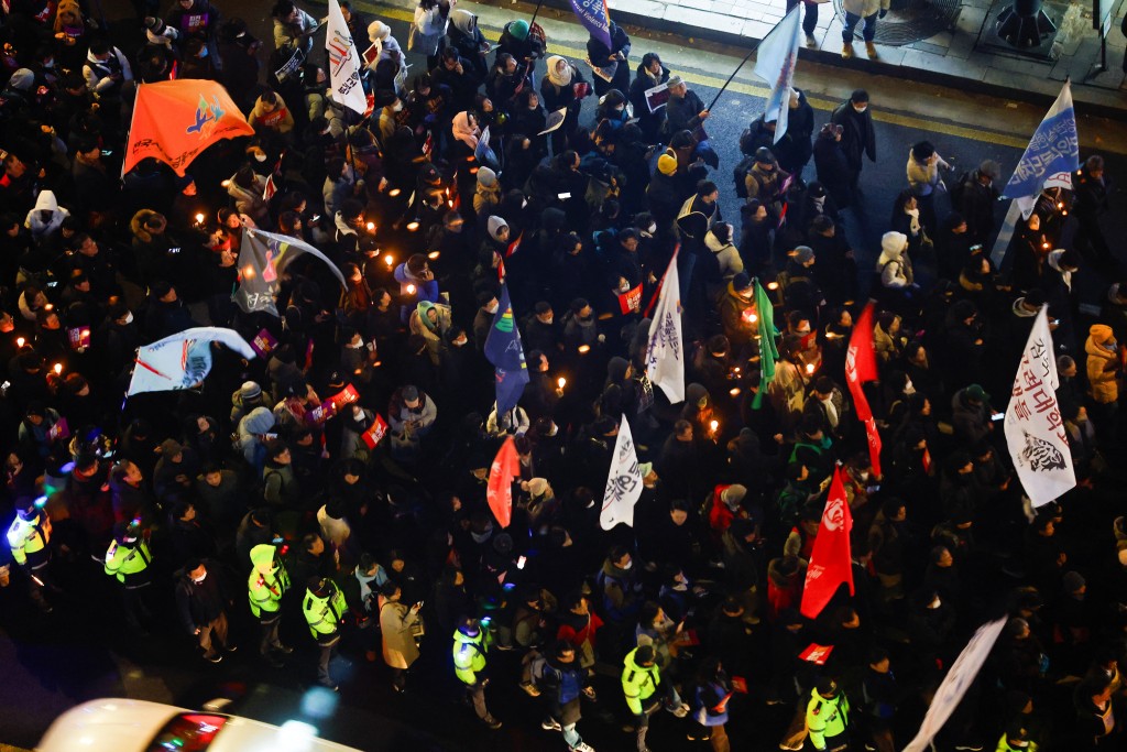 韓國(guó)民眾發(fā)起燭光集會(huì),要求尹錫悅下臺(tái)。