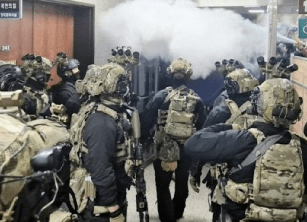 韓國(guó)戒嚴(yán)部隊(duì)一度進(jìn)入國(guó)會(huì)之內(nèi)。