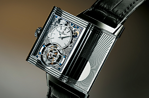 正面放射紋表盤(pán)只透視了6點(diǎn)位采用滾珠軸承代替?zhèn)鹘y(tǒng)框架的陀飛輪,背面第二時(shí)區(qū)的鏤空表盤(pán)則可透視更多齒輪,并飾有巴黎鉚釘手工扭索紋的Reverso Tribute Duoface Tourbillon。 今年在原有的玫瑰金版本以外,新增售價(jià)相對(duì)較親民,且容易襯衫及適合日常佩戴的不銹鋼版本。