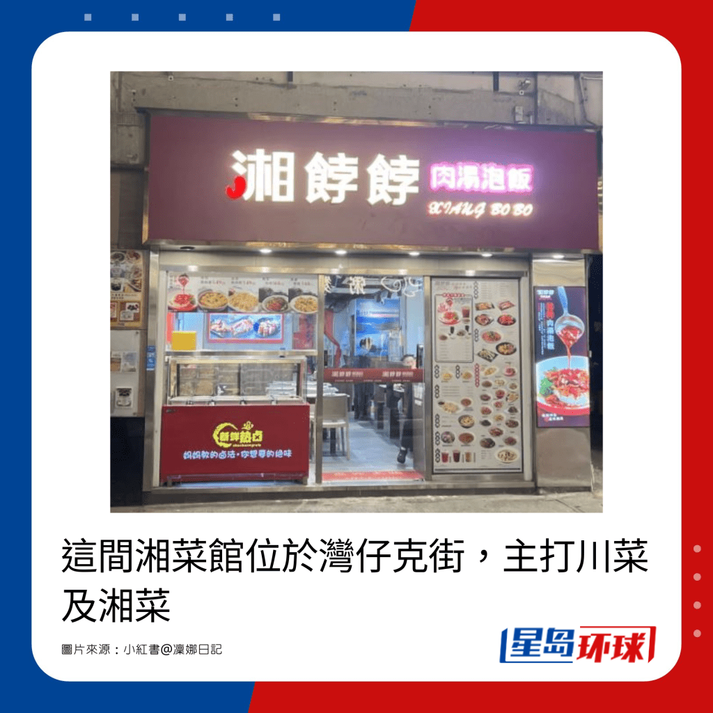 這間湘菜館位于灣仔克街,主打川菜及湘菜