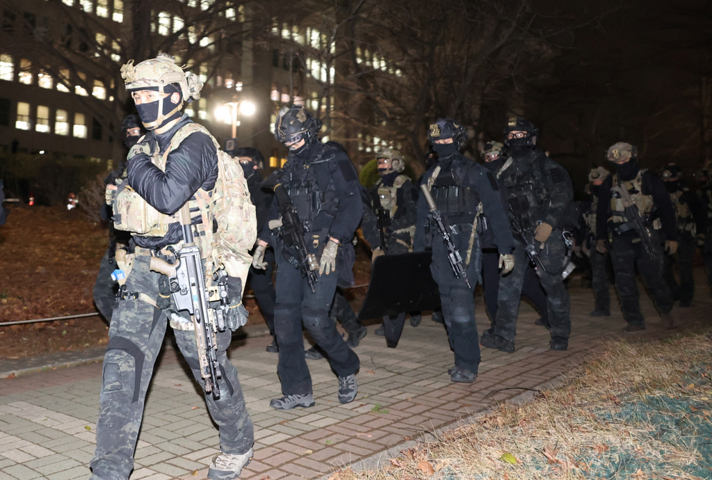 ▲韓國軍方表示,在3日發(fā)生的短時戒嚴,僅有特種步兵前往國會。 路透社