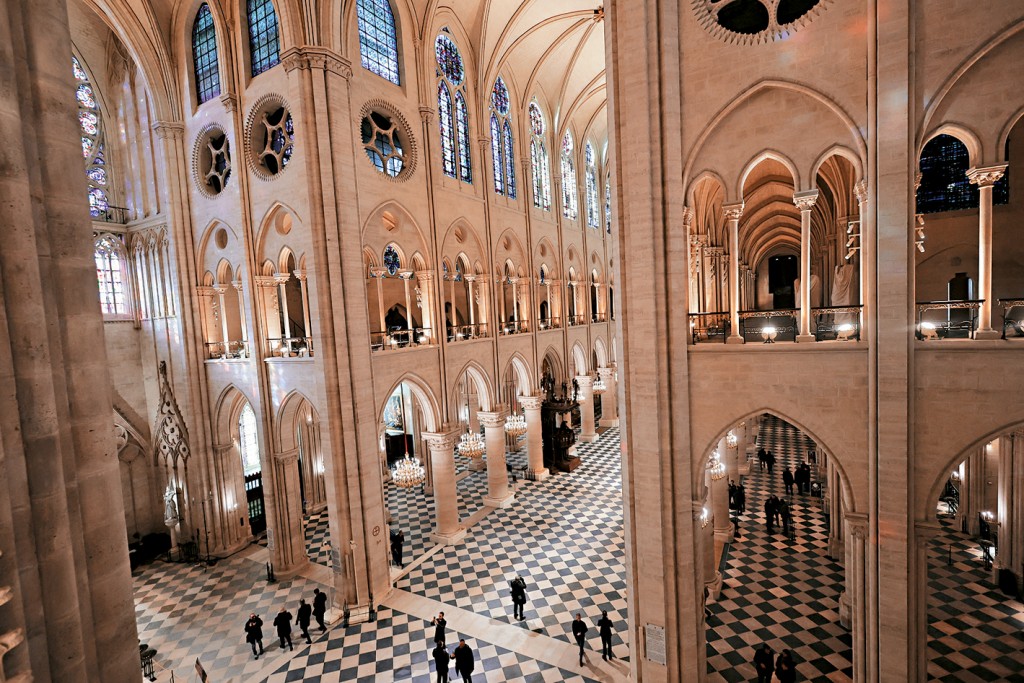 經(jīng)翻新的巴黎圣母院大教堂昨日讓總統(tǒng)馬克龍與過千匠人內(nèi)進(jìn)參觀。