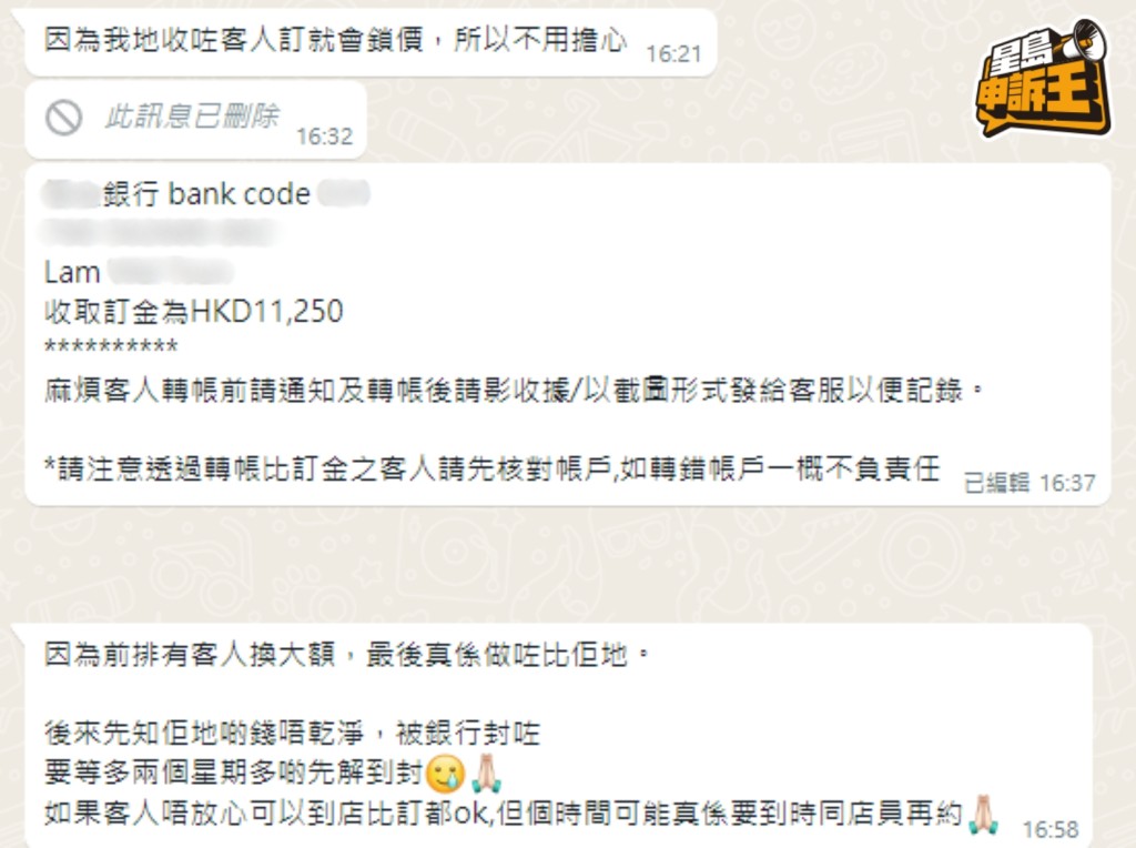 ▲平臺A要求客人預(yù)付一半金額落訂,并解釋原因。