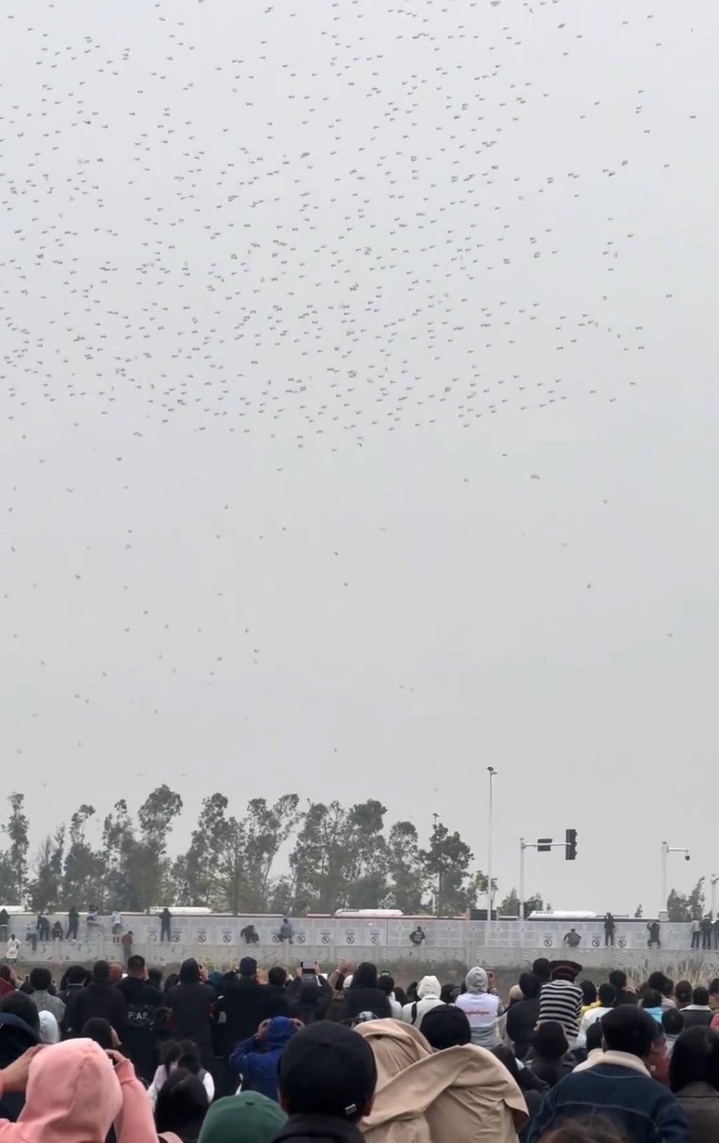 網(wǎng)傳影片所見,天空會有密麻麻的無人機,惟離奇有無人機相繼墮下,部份更墮入海。當時天氣陰天,亦刮起大風,未知是否與意外有關。