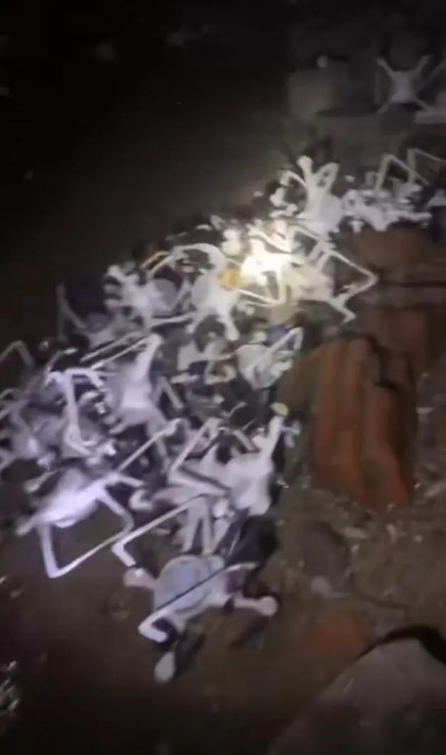 ▲大量墮海的白色無人機潮退后被沖上岸。影片截圖
