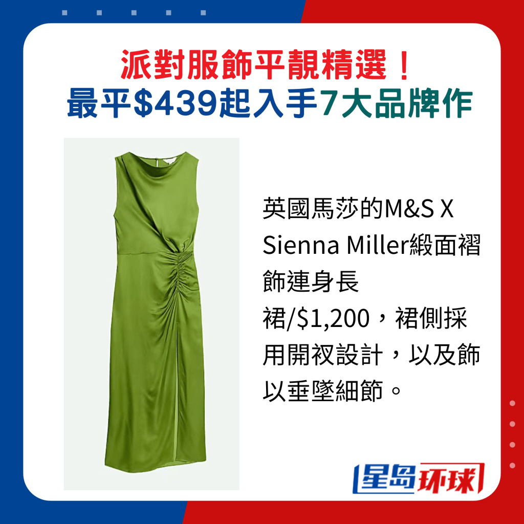 選對一件派對“戰(zhàn)衣”,絕對是整體造型的靈魂所在! 留意服裝設計選用的面料,如絲絨、綺面、喱士及薄紗等質(zhì)感高貴之 選,都有助提升格調(diào)。 英國馬莎伙拍著名女星Sienna Miller推出的新系列,正包羅多元化的派對服,其中一款光亮綺面連身長裙,綠色設計搶盡視線,加上裙側(cè)配以垂墜及開衩細節(jié),展現(xiàn)點到即止的性感。 另一件黑色喱士高領透視上衣,以人手釘上珠粒裝飾,衣袖配搭絲絨束繩設計,添注優(yōu)雅美感。 若內(nèi)襯短身吊帶上衣,下襯皮革褲或短裙,即時散發(fā)型格魅力。H&M新登場的Studio節(jié)日膠囊系列,將經(jīng)典剪裁融入創(chuàng)新設計, 配搭金銀色調(diào)細節(jié)點綴,其中酒紅色無袖晚裝裙大玩同色系拼料設計,以羅紋針織拼搭雙層薄紗裙擺,裙身飾以刺繡圖案及閃亮紗線,玩味與優(yōu)雅兼?zhèn)洹?/p>