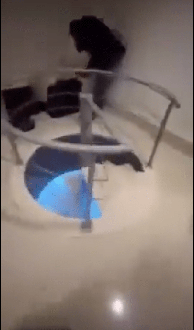▲其中一段影片據(jù)稱(chēng)拍自巴沙爾的弟弟馬赫的豪宅,拍片者發(fā)現(xiàn)在衣帽間旁的一個(gè)房間內(nèi),有一條白色旋轉(zhuǎn)樓梯通往地下。