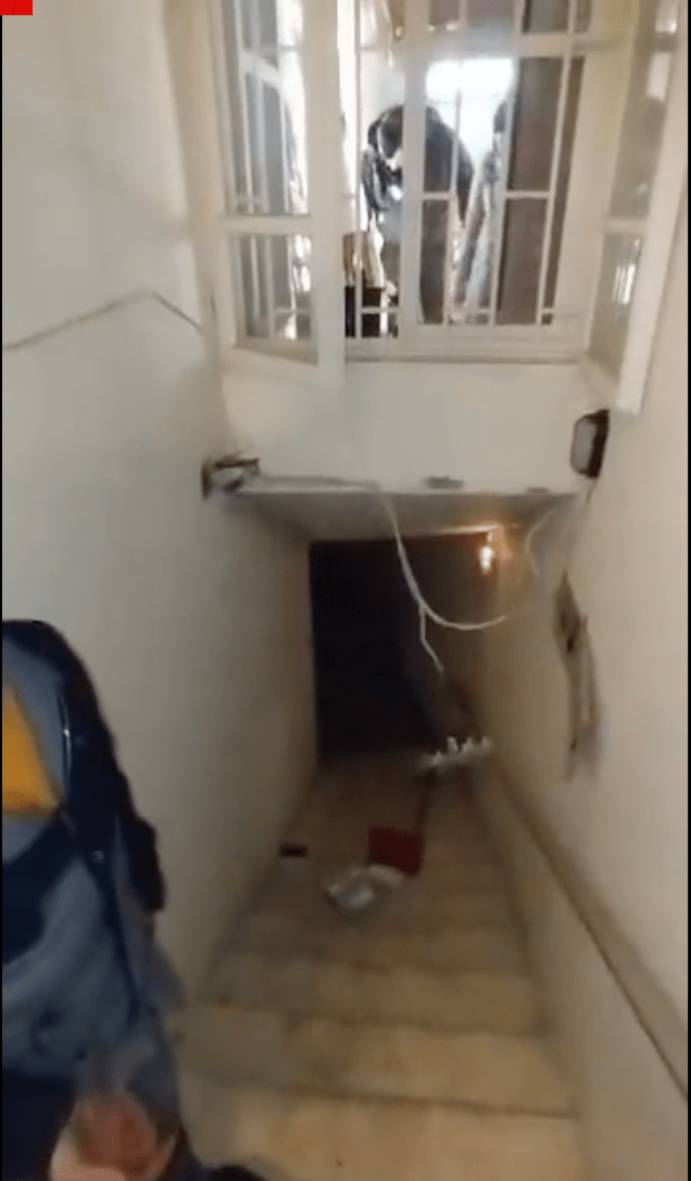 ▲另一段影片是巴沙爾的官邸,叛軍發(fā)現(xiàn)一條通向地下秘道的樓梯。