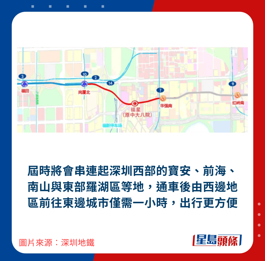 屆時(shí)將會(huì)串連起深圳西部的寶安、前海、南山與東部羅湖區(qū)等地,通車(chē)后由西邊地區(qū)前往東邊城市僅需一小時(shí),出行更方便