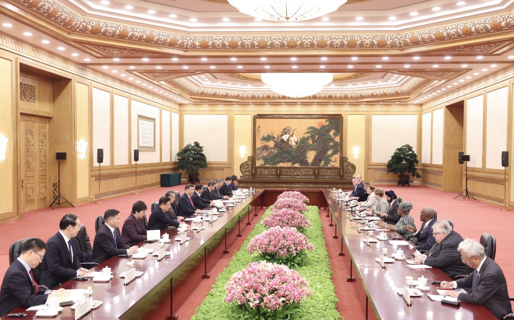 習(xí)近平在北京人民大會堂會見來華出席「1+10」對話會的主要國際經(jīng)濟(jì)組織負(fù)責(zé)人。中新社