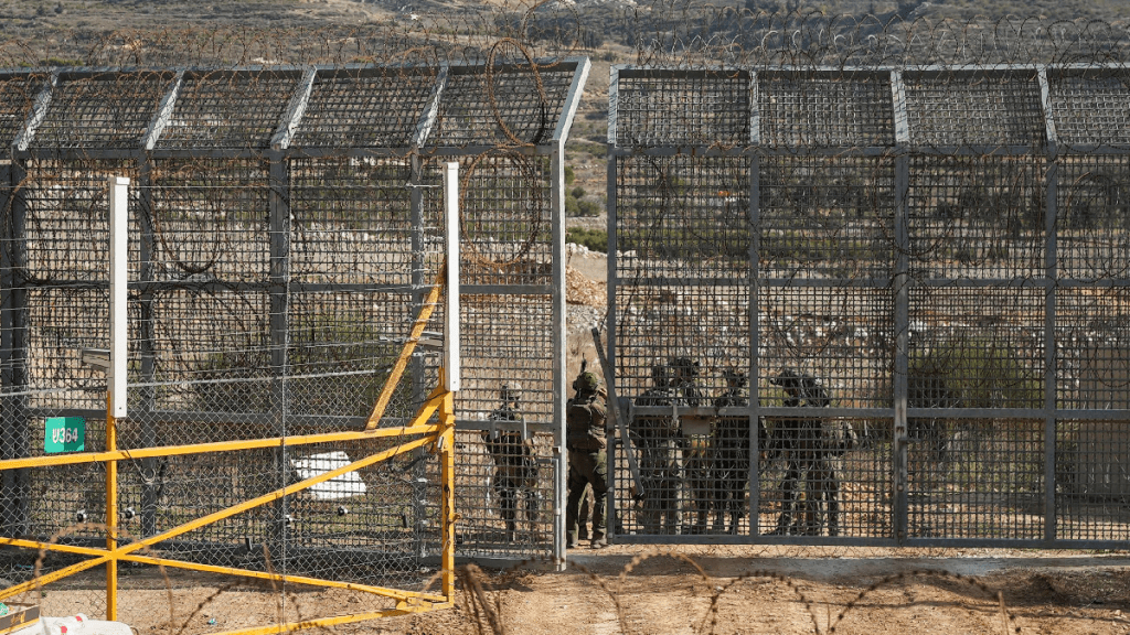 以色列士兵站在停火線外,敘利亞一側(cè)。路透社