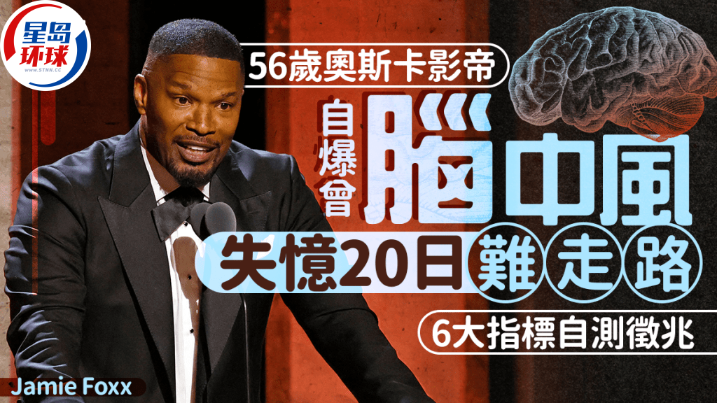 56歲奧斯卡影帝Jamie Foxx于2023年4月曾因不明并發(fā)癥入院,曾傳出命危消息。 近日,他在電視節(jié)目才透露,自己當時因腦中風入院,甚至因此失憶20日,一度無法行走。 中風防不勝防? 有專家指出,有6大指標可自測中風征兆。
