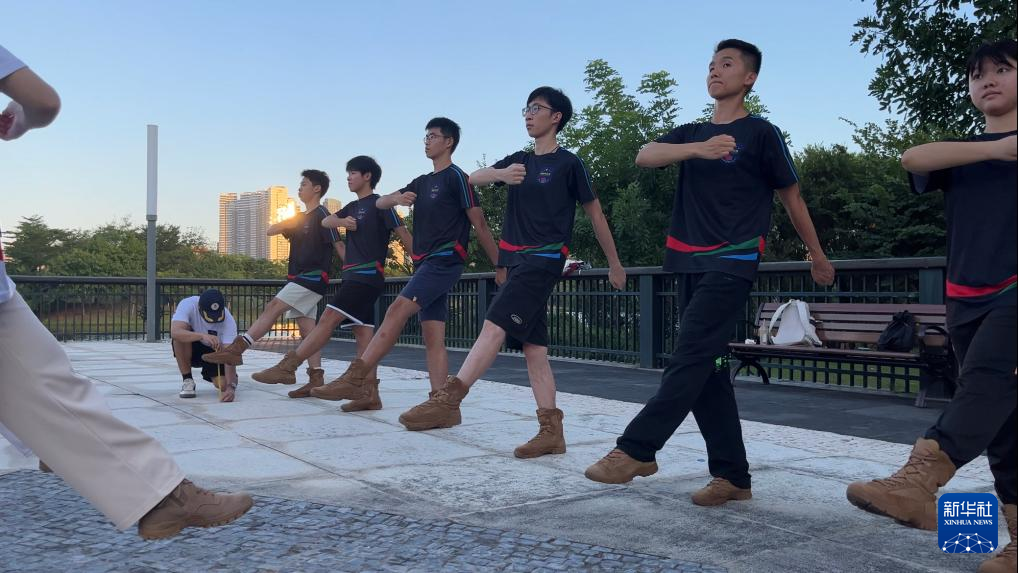 “五星紅旗迎風(fēng)飄揚,勝利歌聲多么響亮……”校園廣播里,童聲演唱的《歌唱祖國》回響。16歲的蔡采晴身姿挺拔,邁開步伐,一絲不茍地進(jìn)行著隊列訓(xùn)練。