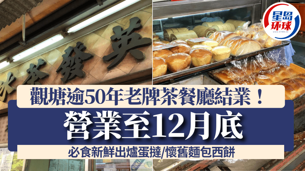 踏入12月,結(jié)業(yè)潮仍未遏止,繼連鎖超市分店及戲院陸續(xù)結(jié)束營業(yè)之外,近日網(wǎng)上社交媒體亦傳出觀塘一間老牌茶餐廳,英發(fā)茶冰廳將營運至本月底。 換言之,餐廳的新鮮出爐招牌蛋撻及懷舊面包西餅,也快將成為絕唱,老饕抓緊時間趕及本月底前大快朵頤。