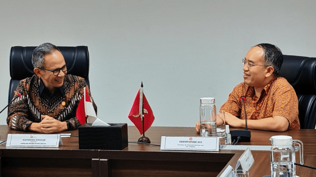 ▲許正宇訪問(wèn)印尼推廣香港家族辦公室樞紐優(yōu)勢(shì)。許正宇(右)今日早上與印尼金融服務(wù)管理局委員會(huì)主席Mahendra Siregar(左)會(huì)面,就促進(jìn)虛擬資產(chǎn)及其他新型金融產(chǎn)品的發(fā)展深入交流。