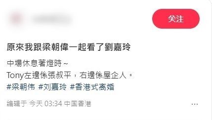 網(wǎng)民遇見(jiàn)梁朝偉開(kāi)心留言:“原來(lái)我跟梁朝偉一起看了劉嘉玲,中場(chǎng)休息著燈時(shí)~Tony左邊系張叔平,右邊系屋企人?!辈簧倬W(wǎng)民羨慕見(jiàn)到梁朝偉外,更贊梁朝偉與太太劉嘉玲好恩愛(ài):“看著像梁媽媽和妹妹”、“哈哈哈哈他一定會(huì)支持老婆的嘛嗑”、“像個(gè)乖孩子”。劉嘉玲也有分享夫妻合照,并在IG簡(jiǎn)單留言:“1/58《香港式離婚》”,不過(guò)因舞臺(tái)劇名嚇親網(wǎng)民:“嚇?biāo)?,以為你兩個(gè)離了!”