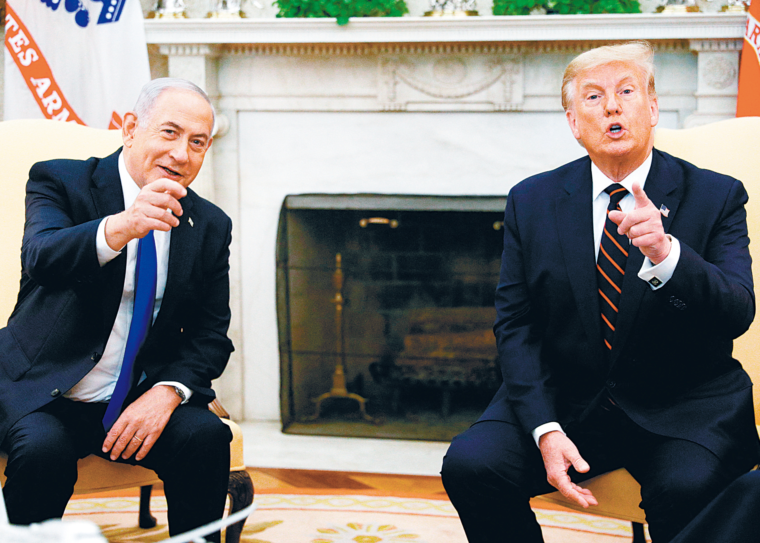 以色列總統(tǒng)內(nèi)塔尼亞胡與特朗普。
