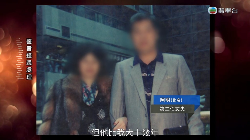 TVB節(jié)目《東張西望》報(bào)道69歲老婦Winnie(化名)指兒子Jason(化名)為錢不認(rèn)人,失去畢生積蓄。 Winnie未夠18歲已嫁給第一任丈夫,生下5名子女,不過8年后因難忍老公出軌而離婚。兩年后,當(dāng)時(shí)28歲的Winnie結(jié)識了第二任“丈夫”阿明(化名),二人育有一子Jason。 Winnie坦言阿明高大靚仔,即使對方比她年長十多年,又是社團(tuán)中人,而且游手好閑,她亦深愛著對方。小學(xué)三年級都未讀完的Winnie更為養(yǎng)家下海做舞小姐長達(dá)11年,1991年她用皮肉錢買入土瓜灣一個單位,埋下母子反目伏線。
