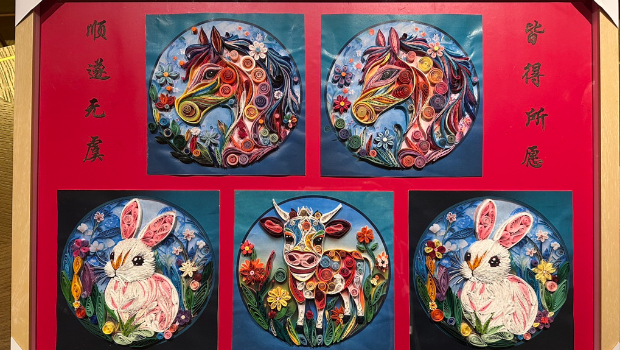 ▲龔正致贈蔣萬安一家五口生肖的知名卷紙畫。(北市府提供)