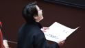 ▲“立法院”17日院會行使考試院長、副院長、考試委員同意權(quán)投票,“立委”黃珊珊發(fā)現(xiàn)自己蓋錯章,抬頭詢問院長怎么辦。