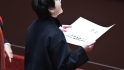 黃珊珊發(fā)現(xiàn)自己蓋錯(cuò)章,抬頭詢問韓國瑜怎么辦。