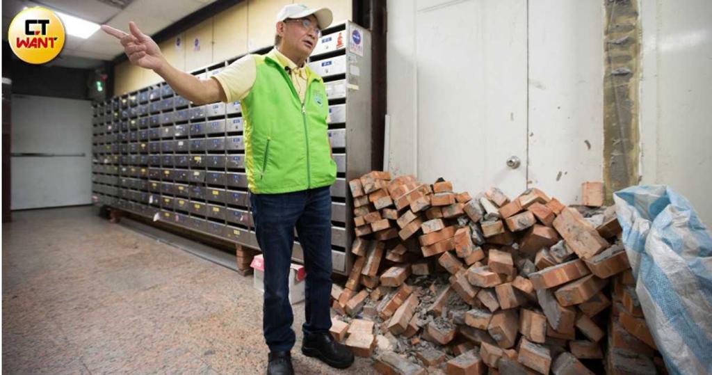 他也提到,這棟大樓也40年了,到處都有水泥石塊掉落、鋼筋外露,也怕地震有危險,希望市府重視這個問題,能協(xié)助輔導(dǎo)公辦都更、將容積率放大,“里面套房只有10坪,不能1坪換1坪,沒都更意愿,只好一直擺下去,等哪天又發(fā)生什么再說了?!彼J為,只要容積率能到840%,就有希望。