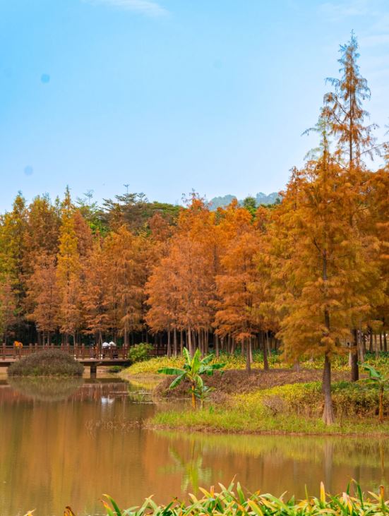 深圳紅花嶺公園向來都是深圳龍崗區(qū),最大規(guī)模的落羽杉觀賞地點(diǎn)。落羽杉乃南方紅葉的獨(dú)特自然美景,最佳欣賞期由12月至1月,隨著氣溫進(jìn)一步下降,由原本的綠葉開始出現(xiàn)變?yōu)辄S色,之后變?yōu)榧t色,營造唯美的冬日景致,詩意十足。