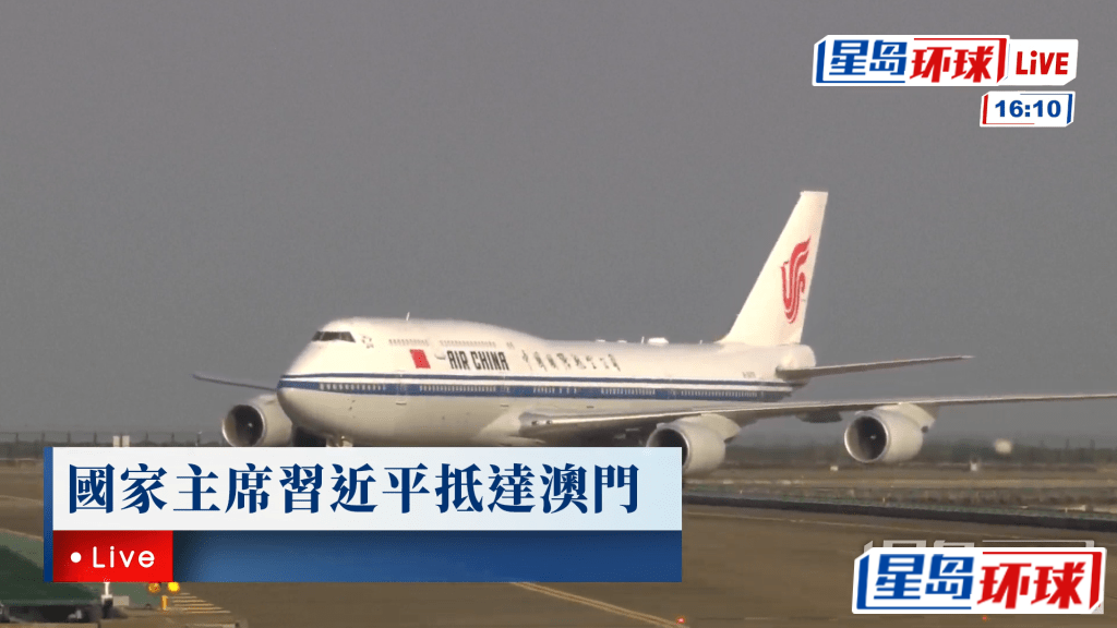 ▲國(guó)家主席習(xí)近平乘坐的專機(jī)抵連澳門機(jī)場(chǎng)。