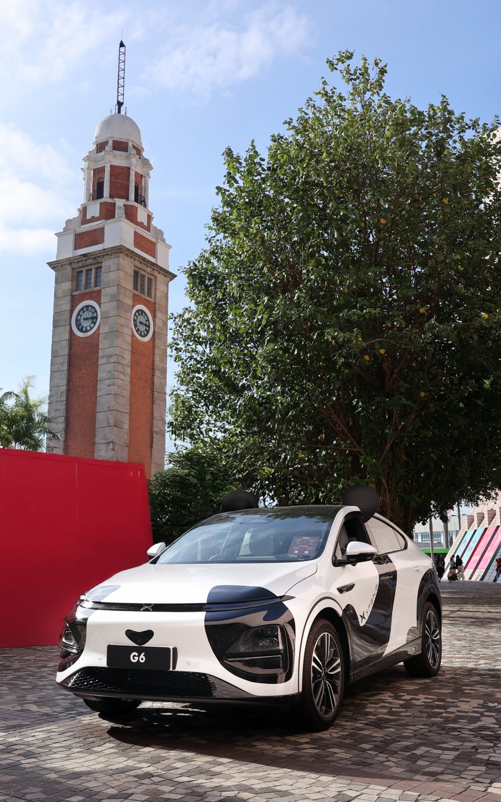 ▲小鵬G6純電動SUV化身大熊貓,于九龍尖沙咀鐘樓留下足跡。