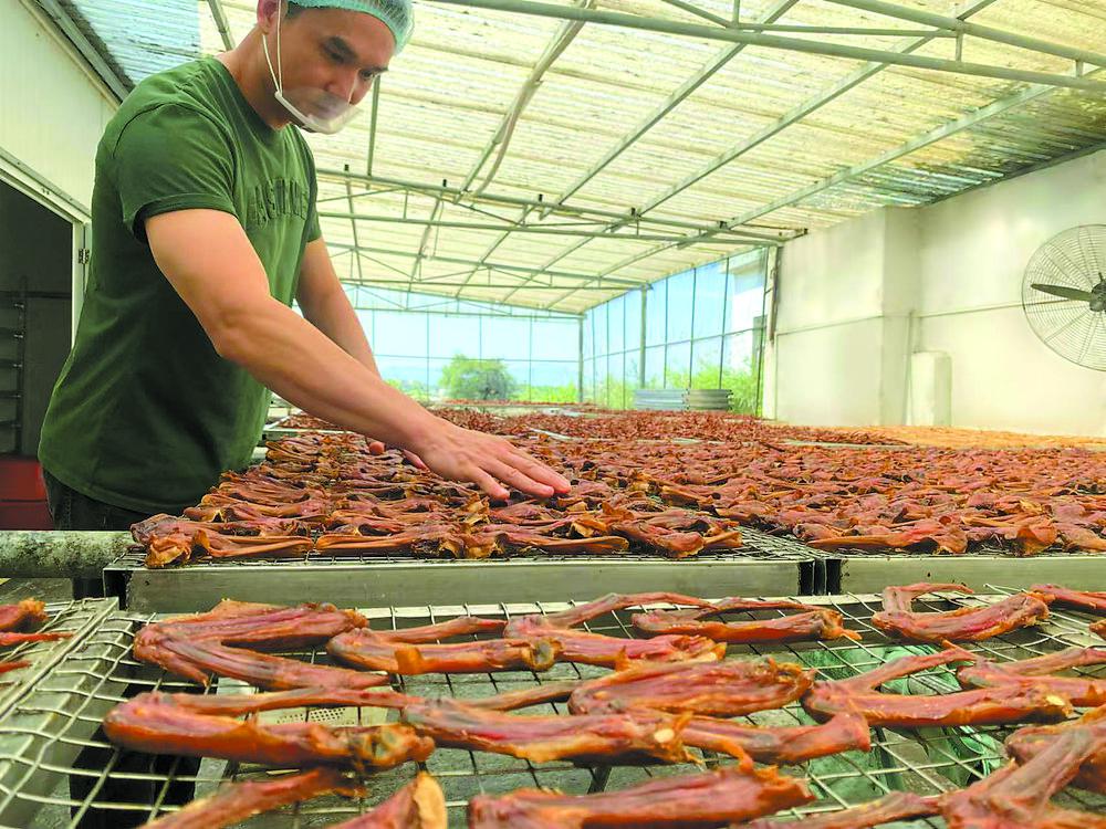 孟子云:“天時(shí)、地利、人和,三者不得,雖勝有殃?!兵喸?dú)特風(fēng)味的產(chǎn)生離不開“人和”的因素。從選鴨、配料、腌制到晾曬、包扎成品,鴨扎包的每一步制作工序都頗為考究。據(jù)了解,制作鴨扎包的鴨子必須選取蓮洲鎮(zhèn)本地飼養(yǎng)的麻鴨,飼養(yǎng)60天左右的成鴨為最佳原料。這個(gè)時(shí)候的鴨子剛好成熟,肉質(zhì)鮮美且骨頭也不會(huì)太硬,正好能夠咬碎嚼爛。