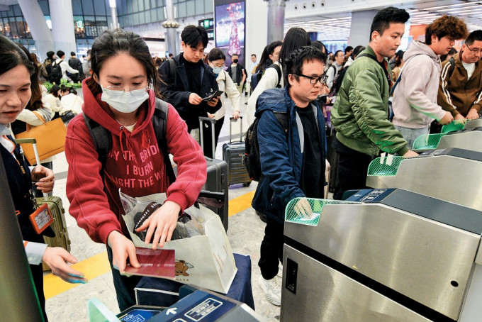 ▲圣誕節(jié)又到了,不少市民已準(zhǔn)備好到外地歡度佳節(jié),高鐵站昨出現(xiàn)離境人潮。